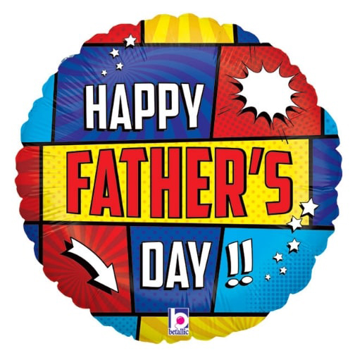 Honor your superhero dad with our dynamic 18-inch (45.7cm) comic book styled Father’s Day balloon from The London Balloon Shop. This premium foil balloon features authentic comic panel design with vibrant colors, perfect for Father’s Day celebrations and superhero themed parties.
